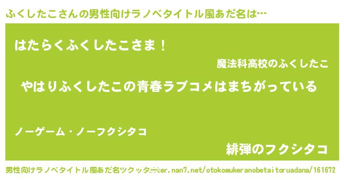 | 女子向けラノベタイトル風あだ名 | 『ふくしたこ伯爵の花嫁』 |