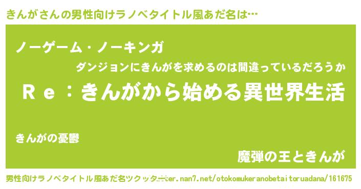 | 女子向けラノベタイトル風あだ名 | 『闇のきんが』『死神きんがの再婚』 |