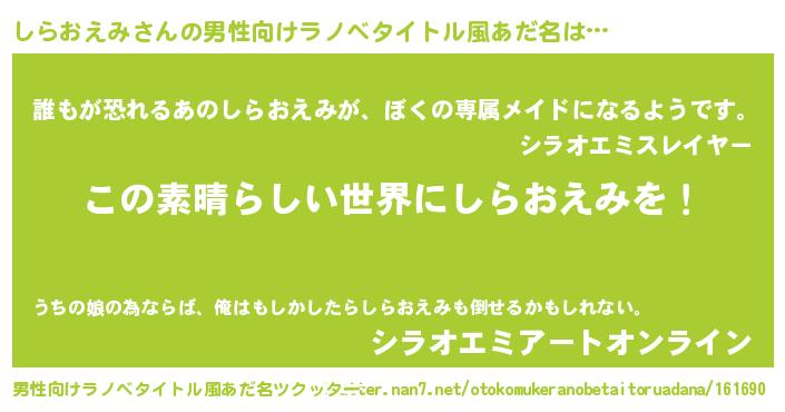 | 女子向けラノベタイトル風あだ名 | 『悪役しらおえみに転生したようですが、知った事ではありません』 |
