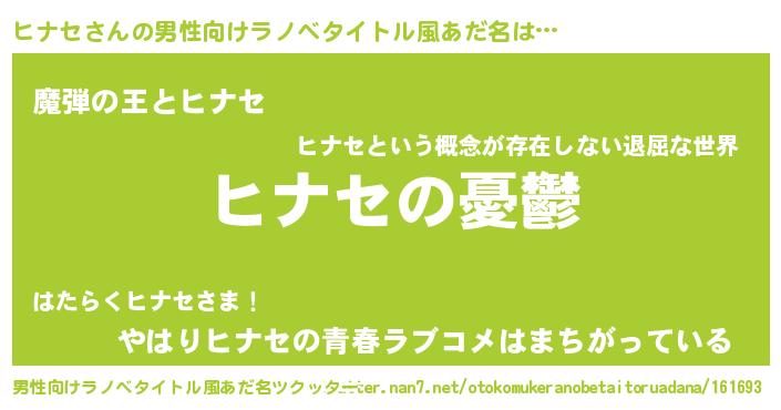 | ヒーロー風カッコイイあだ名 | 『スーパーヒナセ』『仮面ヒナダー』 |