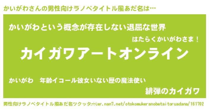 | 意味不明あだ名 | 『ペロリンかいがわ』『永久保存かいがわ』 |