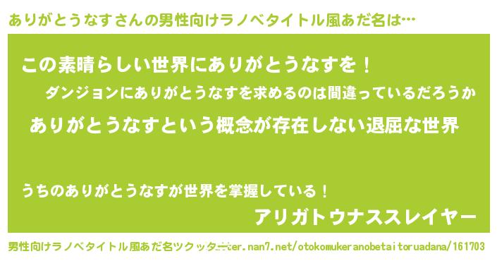 ヘコむあだ名 | 『ありがとうなす(小並感)』『ありを』 |