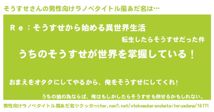 | 意味不明あだ名 | 『自称そうすせ』『そうすせフォーエバー』 |