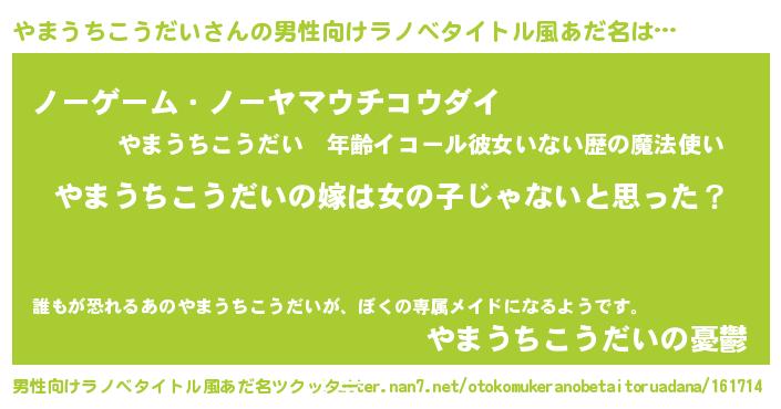 | 女子向けラノベタイトル風あだ名 | 『やまうちこうだい様がみてる』 |