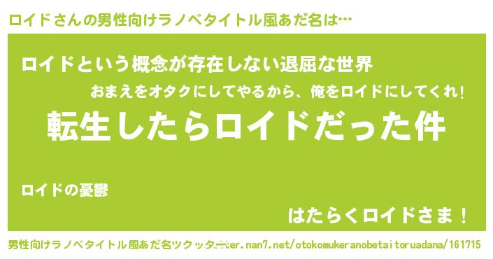 ロイドさんの男性向けラノベタイトル風あだ名をツクッター!
