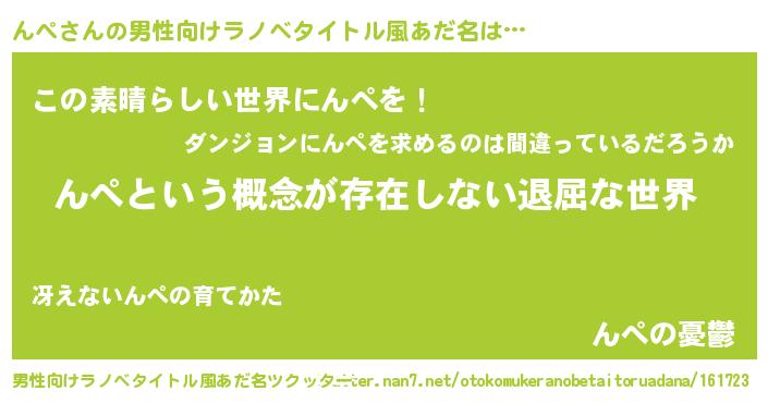 | 伝説のあだ名 | 『聞きしに勝る勇者んぺ』 |