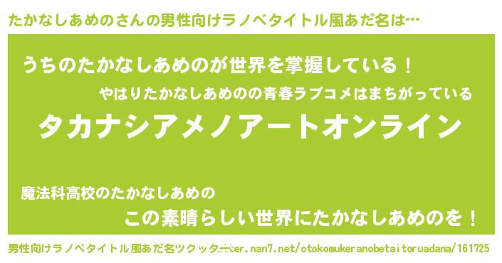 | ヒーロー風カッコイイあだ名 | 『スーパータカナシアメノ』 |