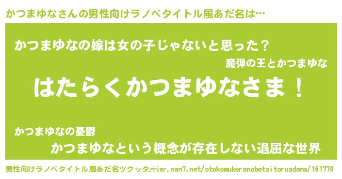 | 胡散臭い通販商品みたいなあだ名 | 『信頼と実績のサプリメント…その名も「かつまゆな」』 |