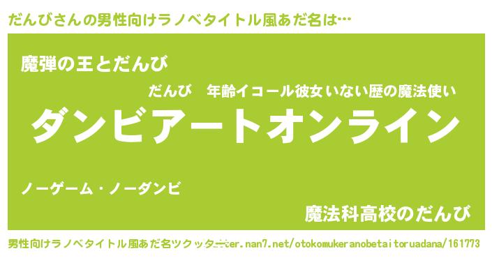 | 女子向けラノベタイトル風あだ名 | 『だんび姫と円卓の騎士』『だんび恋絵巻』 |
