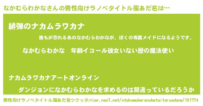 | 女子向けラノベタイトル風あだ名 | 『なかむらわかなの玉の輿計画!』 |