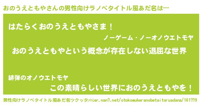 | 意味不明あだ名 | 『永久保存おのうえともや』 |