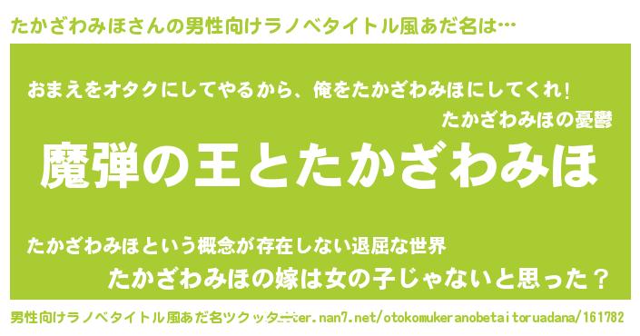 | 意味不明あだ名 | 『住所不定無職たかざわみほ(74歳)』 |