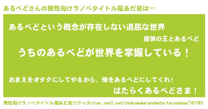 | ヘコむあだ名 | 『あるべど(小並感)』『あるっふぃ~』 |