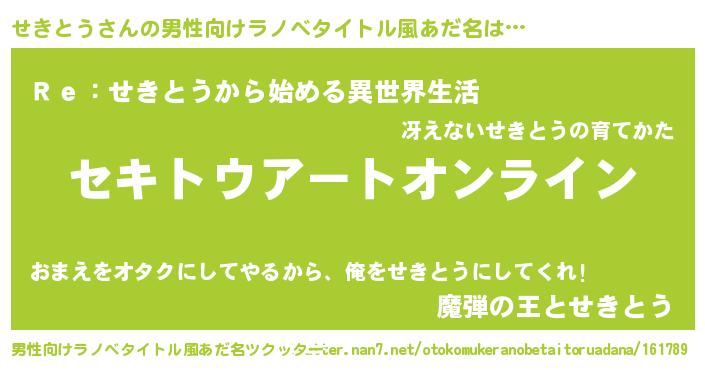 | 意味不明あだ名 | 『ペロリンせきとう』『自称せきとう』 |
