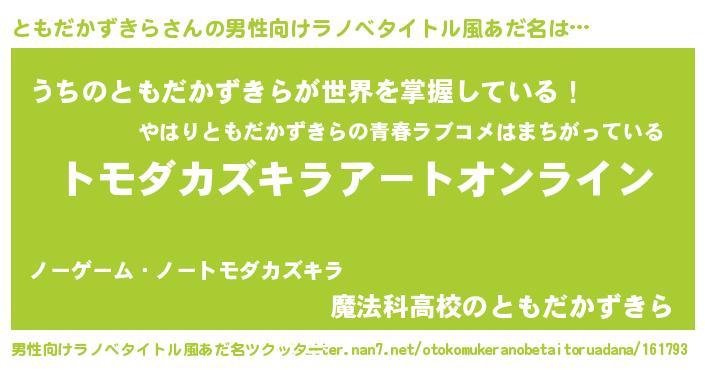 | 女子向けラノベタイトル風あだ名 | 『誰かこのともだかずきらを説明してください! ~契約から始まるウェディング~』 |