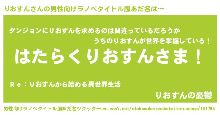 | 萌えアニメ | 主人公(りおすん)のあだ名『 りおっち』 |