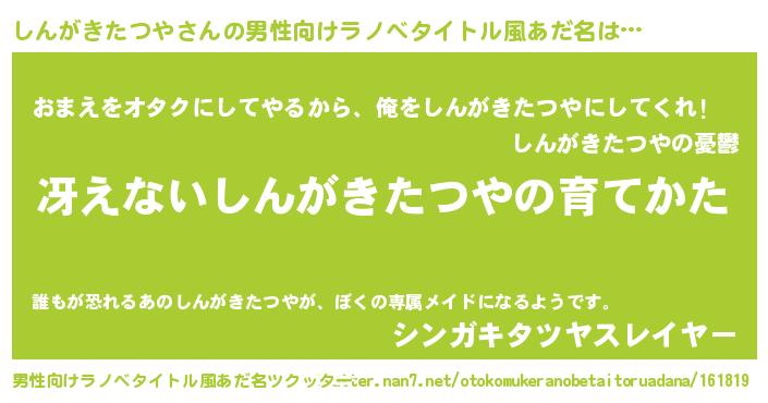 | 女子向けラノベタイトル風あだ名 | 『男装しんがきたつやの憂鬱な任務』 |