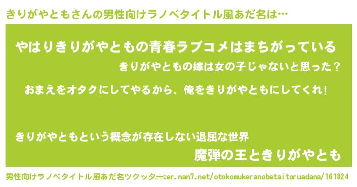 | 女子向けラノベタイトル風あだ名 | 『きりがやとも恋絵巻』 |