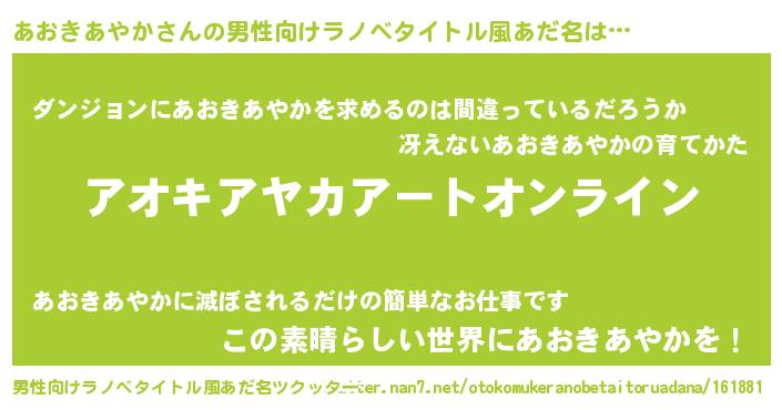| 伝説のあだ名 | 『封印されし竜騎士あおきあやか』 |