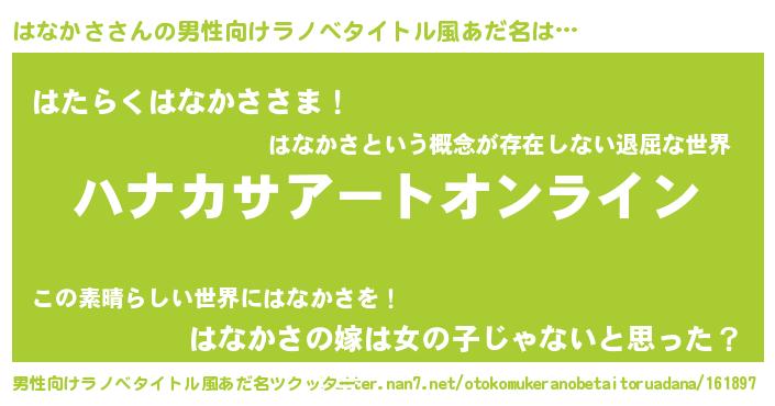 | 女子向けラノベタイトル風あだ名 | 『はなかさ姫と円卓の騎士』 |