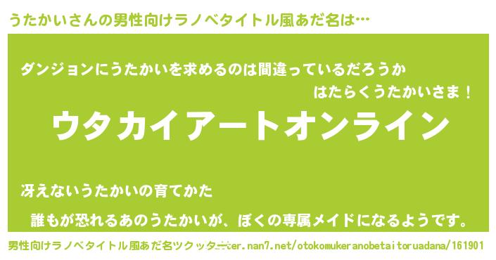 | ヒーロー風カッコイイあだ名 | 『スーパーウタカイ』『黄金騎士ウタ』 |