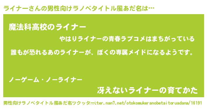| ヘコむあだ名 | 『ライナー(小並感)』『豆乳』 |