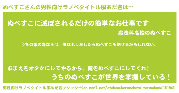 | 女子向けラノベタイトル風あだ名 | 『ぬべすこの婚約者』 |