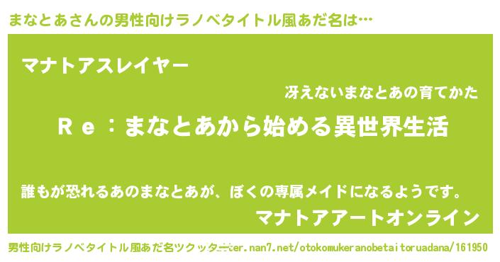 | 肩書あだ名 | 『まなとあ総統』『まなとあ中佐』 |