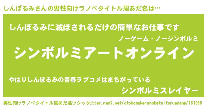 | 胡散臭い通販商品みたいなあだ名 | 『億万長者になれる霊験あらたかなお札…その名も「しんぼるみ」』 |