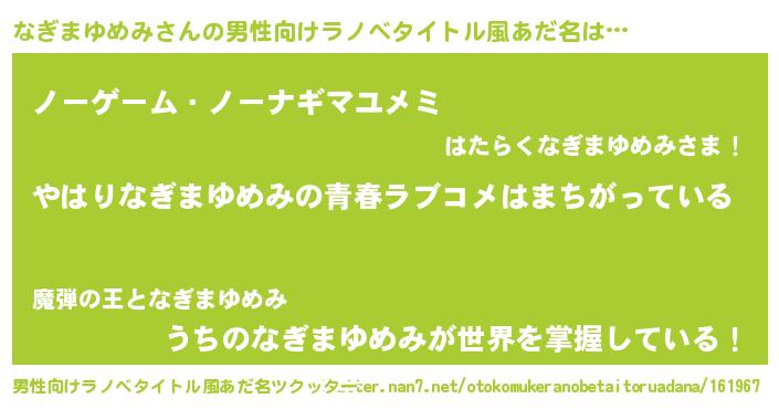 | 女子向けラノベタイトル風あだ名 | 『なぎまゆめみの雑貨屋さん』 |