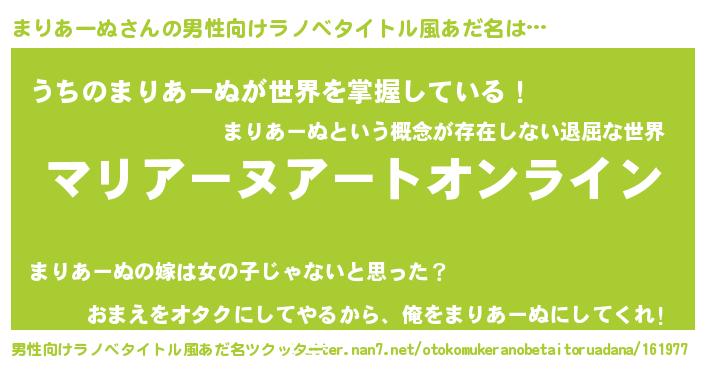 | 胡散臭い通販商品みたいなあだ名 | 『億万長者になれる霊験あらたかなお札…その名も「まりあーぬ」』 |