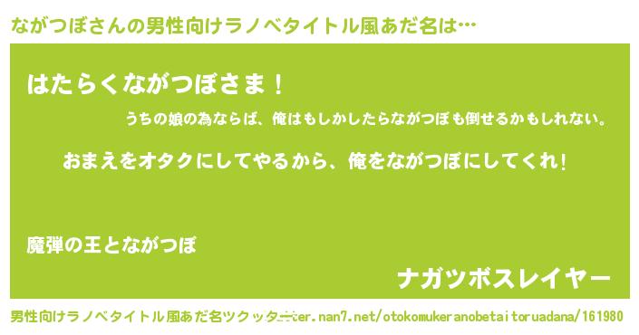 | 女子向けラノベタイトル風あだ名 | 『ながつぼ夫妻のなれそめ』 |