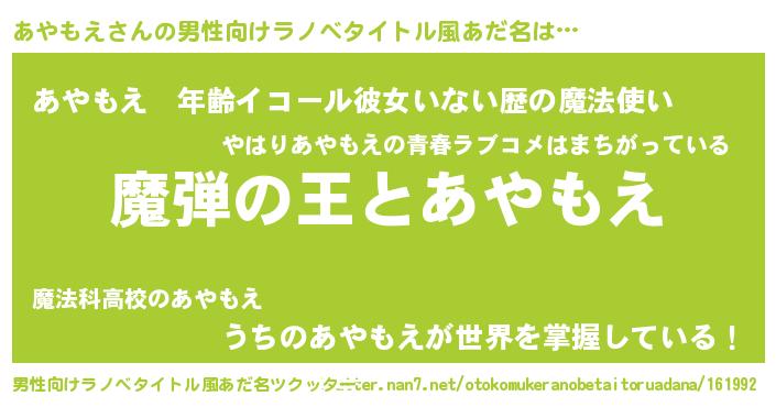 | 意味不明あだ名 | 『住所不定無職あやもえ(43歳)』 |