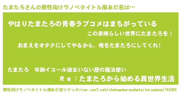 | ヒーロー風カッコイイあだ名 | 『正義の使者たまたろ』『仮面タマダー』 |