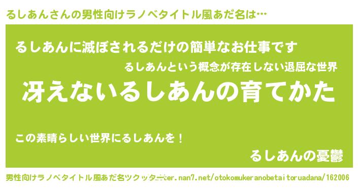 | 胡散臭い通販商品みたいなあだ名 | 『モテモテ間違いなしブレスレット…その名も「るしあん」』 |