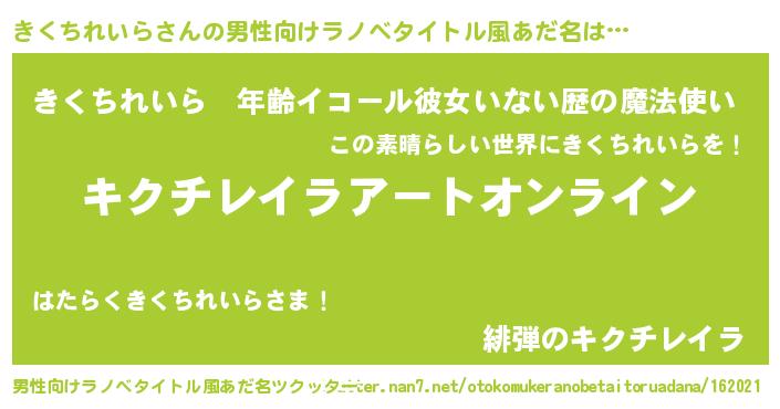| 女子向けラノベタイトル風あだ名 | 『きくちれいら姫と円卓の騎士』 |