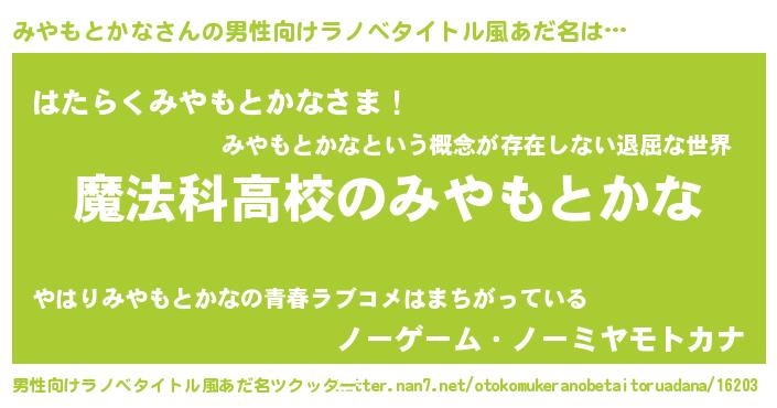 | 女子向けラノベタイトル風あだ名 | 『みやもとかなアンティーク』 |