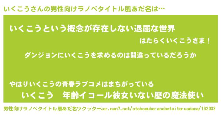 | 意味不明あだ名 | 『とにかく怪しいいくこう』 |