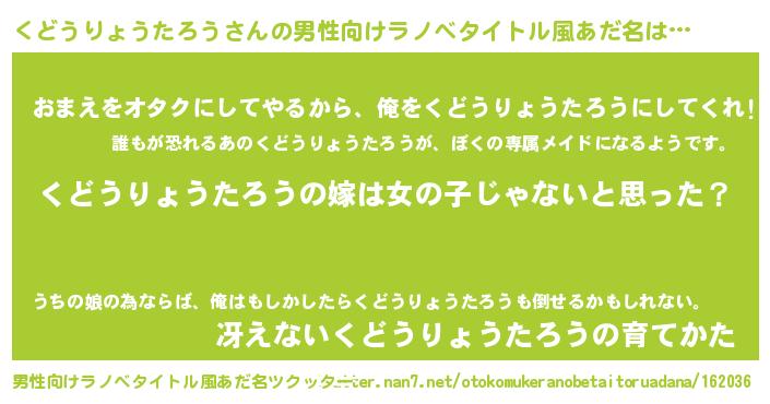| 女子向けラノベタイトル風あだ名 | 『くどうりょうたろう様がみてる』 |