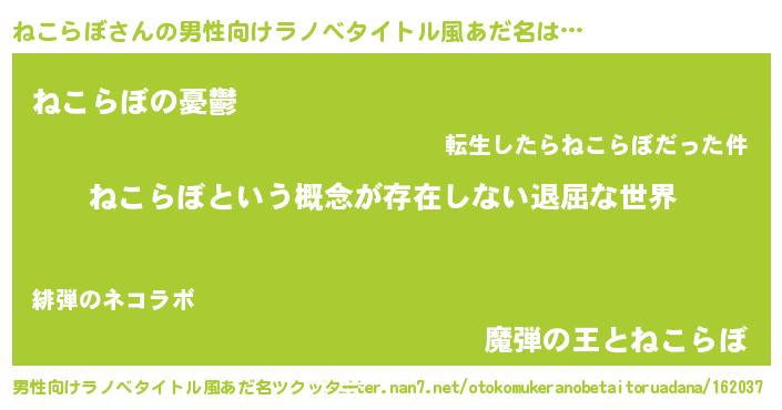 ねこらぼさんの男性向けラノベタイトル風あだ名をツクッター!