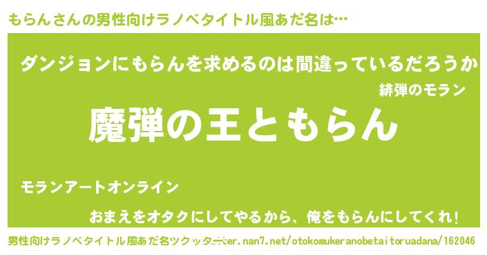 | 意味不明あだ名 | 『住所不定無職もらん(79歳)』『自称もらん』 |