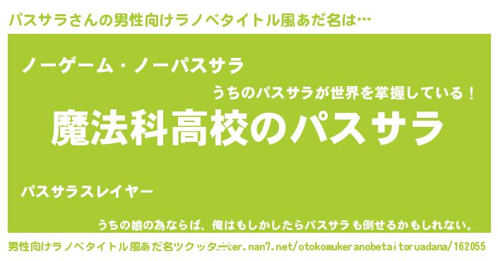 | 女子向けラノベタイトル風あだ名 | 『パスサラなんてお断りですっ。』 |