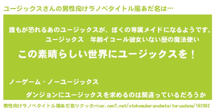 | 意味不明あだ名 | 『住所不定無職ユージックス(14歳)』 |