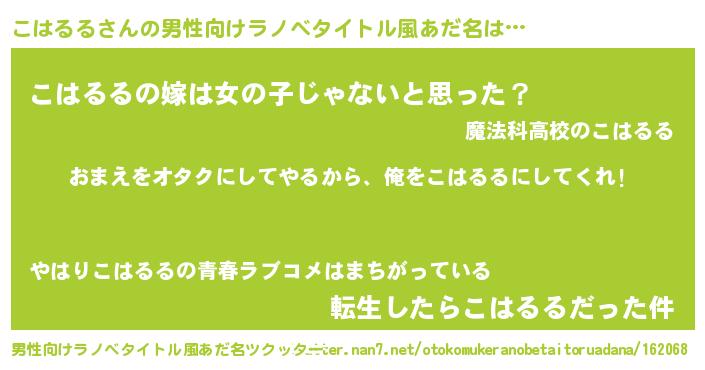 | 女子向けラノベタイトル風あだ名 | 『こはるる恋絵巻』『こはるる様がみてる』 |
