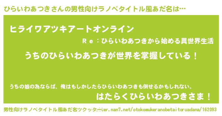 | 料理風あだ名 | 『ひらいわあつきの炊き込みご飯』 |