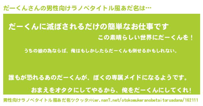 | ヒーロー風カッコイイあだ名 | 『ウルトラだーくんマン』『仮面ダーダー』 |