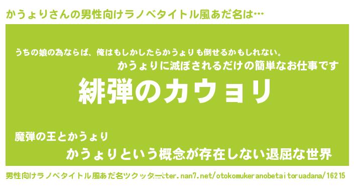かうょりさんの男性向けラノベタイトル風あだ名をツクッター!