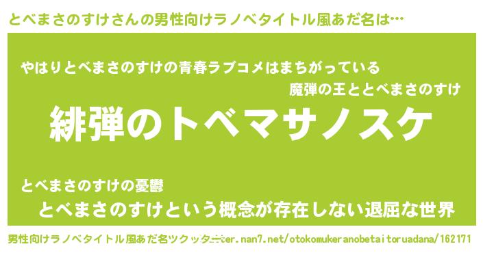 | 意味不明あだ名 | 『とべまさのすけフォーエバー』 |
