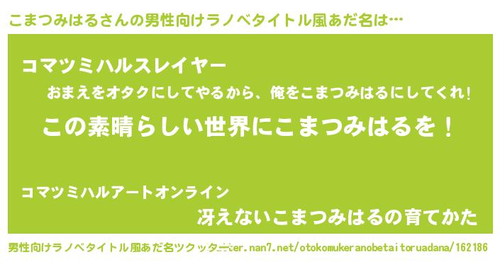 | ヒーロー風カッコイイあだ名 | 『仮面コマダー』『スーパーコマツミハル』 |