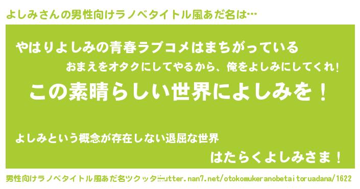 | 意味不明あだ名 | 『住所不定無職よしみ(50歳)』 |
